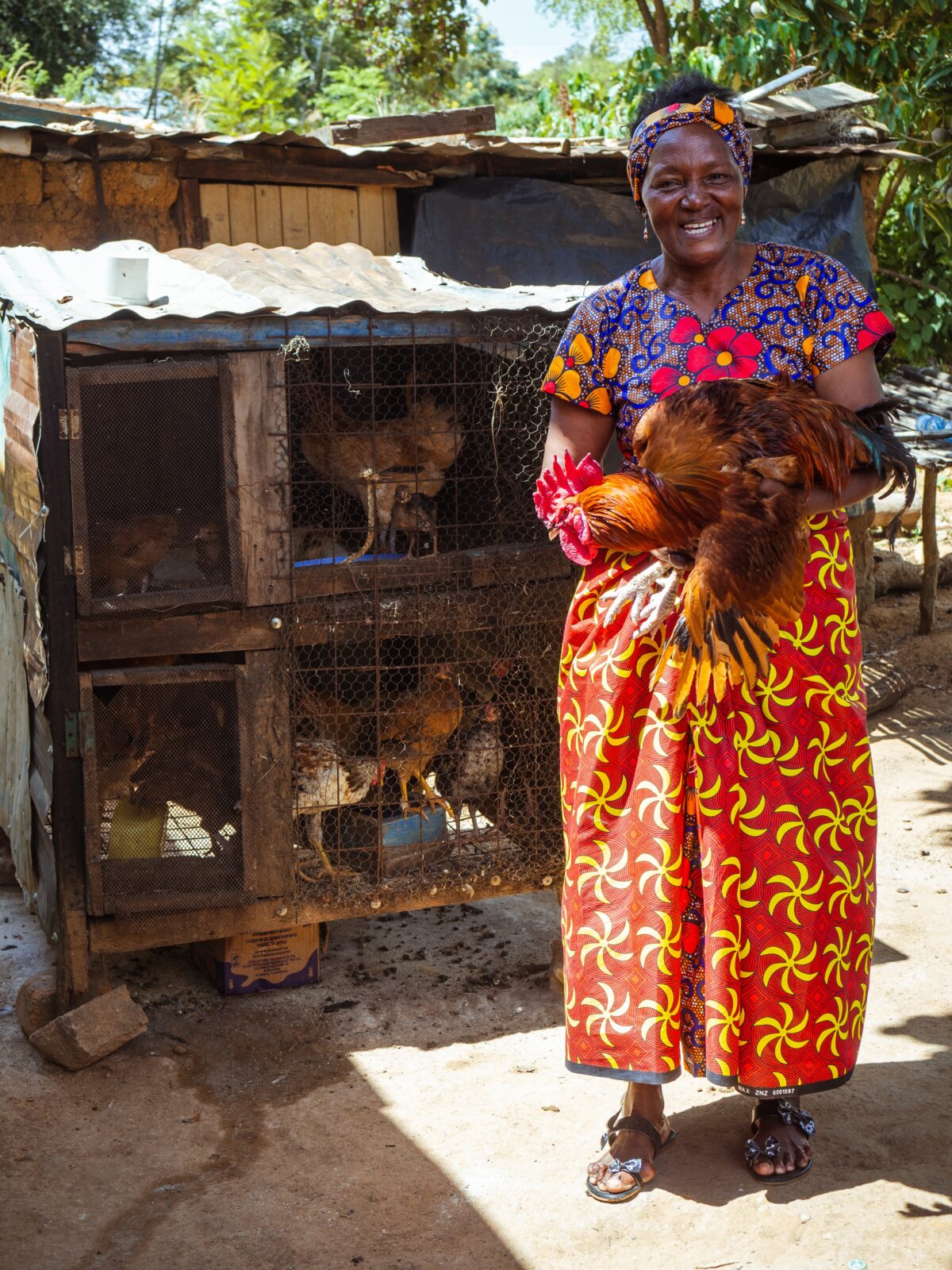 Through the support of CWS, Mama Nguyo received the building blocks she needed: three chickens. Because of the care she provided to her small flock, Mama Nguyo now has 20 chickens and was able to buy a rooster of her own.